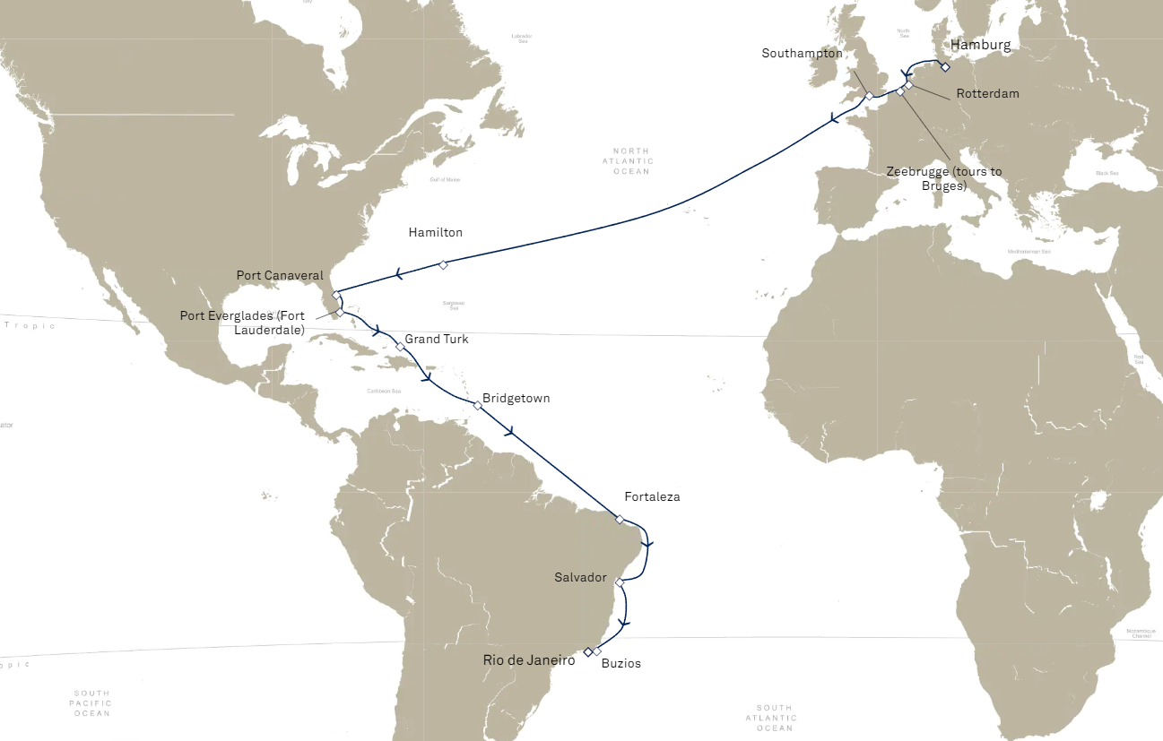 Le transport aérien est compris pour les traversées transatlantiques avec assistance francophone du 1er mai 2026 (M609C), 8 et 9 juin 2026 (M611D). Non applicables aux autres traversées transatlantiques.