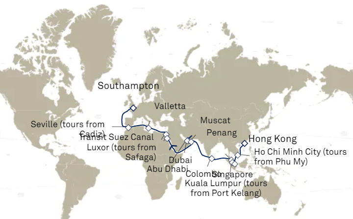 Départ : Hong Kong - Chine / Arrivée : Southampton - Royaume-Uni
