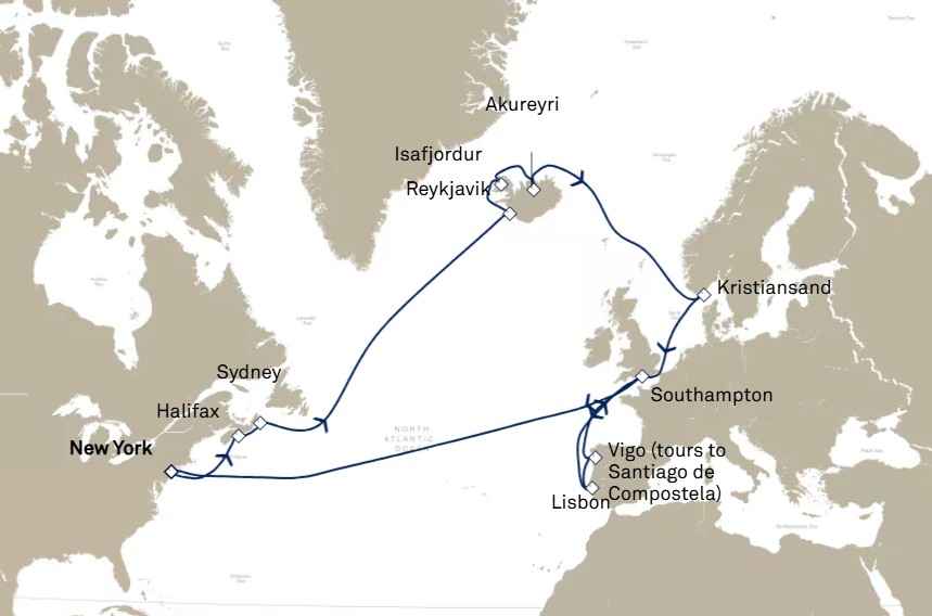Pour le départ de Cherbourg le 9 juin 2026, réservation en cabine garantie, assignation du n° de cabine à quelques jours du départ.
