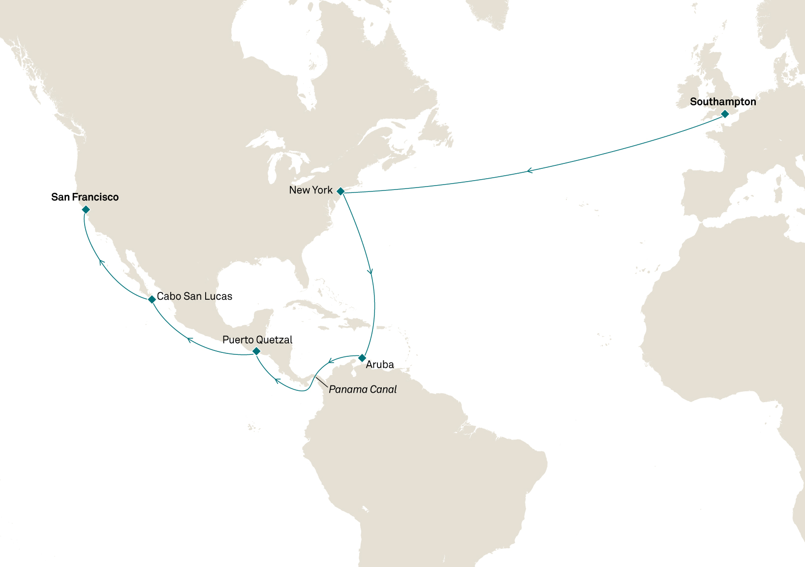 Départ : Southampton - Royaume-Uni / Arrivée : San Francisco - États-Unis