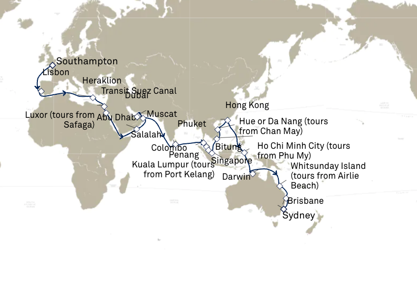 - Les excursions facultatives disponibles à Cherbourg (pour les passagers ayant embarqués au Havre le 8 juin) et à Southampton