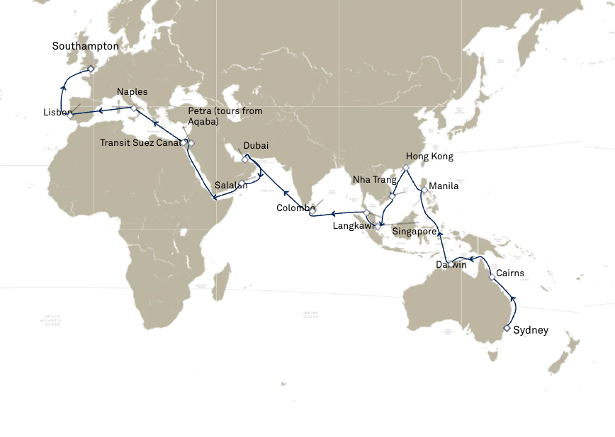 Les hôtes en catégorie Britannia bénéficient gracieusement du petit-déjeuner en cabine jusqu’à 10h. Au-delà, des frais peuvent s’appliquer, notamment pour certains plats signature.