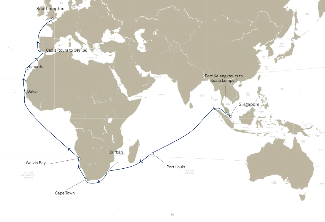 Départ : Singapour / Arrivée : Southampton - Royaume-Uni