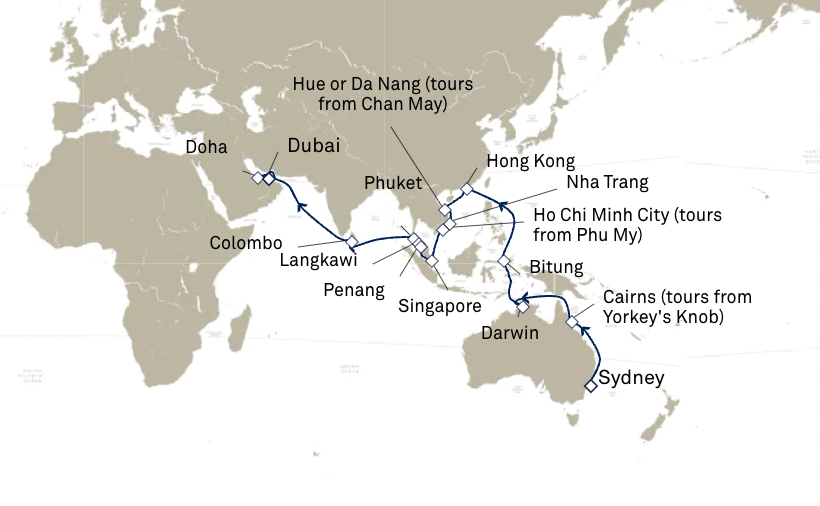 Les formalités (visas d’entrée et formalités sanitaires) sont communiquées à l’inscription en fonction des pays visités et s’adressent aux passagers de nationalité française. Nous n’avons pas la possibilité de vérifier les formalités pour les passagers d’autre nationalité qui doivent se renseigner auprès des consulats des pays visités.