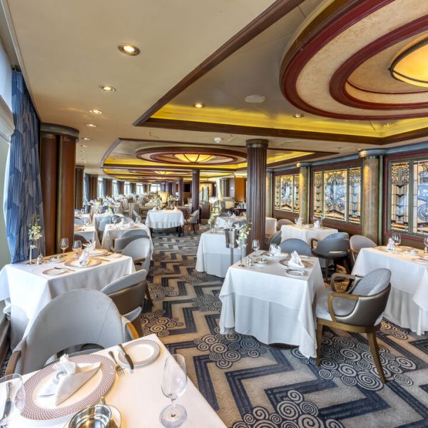 Magnifiquement aménagé, le Queens Grill est un haut lieu de la gastronomie en mer. Célèbre par sa cuisine sophistiquée et son service en gants blancs irréprochables, le Queens Grill vous accueille pour un moment gustatif intense, au-delà de vos rêves les plus profonds. Que ce soit pour le petit-déjeuner, le déjeuner ou le dîner, vous savourerez un art de la table, un service irréprochable et des plats impeccablement préparés allant des créations contemporaines exquises aux classiques de la flotte Cunard. Découvrez le summum de l’élégance dans ce restaurant, qui reflète la perfection comme aucun autre. Ses menus « à la carte » vous séduiront, vous fascineront ou vous étonneront par leurs saveurs et leur rigueur. Le raffinement a désormais un nom.