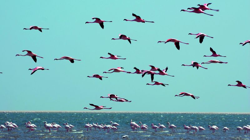 Ville portuaire ouvrant sur l’océan Atlantique, Walvis Bay, Baie des Baleines en Afrikaans, est une destination prisée des visiteurs dans la région. La faune est exceptionnelle, avec des flamants roses, des pélicans, des baleines, des dauphins, des otaries… Ces espèces endémiques sont pour la plupart observables à partir de mini-croisières à bord de catamarans.