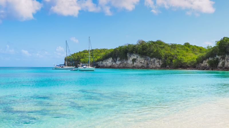 Sur l’île de Marie-Galante, vous succomberez aux charmes de la vie antillaise avec ses plages de sable blanc, ses lagons bordés de récifs coralliens, et ses champs de canne à sucre.
