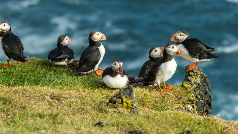 Petite île d’à peine 5 km2, Grimsey est située à une quarantaine de kilomètres au nord de l’Islande. Le principal attrait de l’île est la grande diversité de sa faune : phoques, macareux, pingouins… Il y a une soixantaine d’espèces présentes sur l’île et le long de ses vertigineuses falaises.