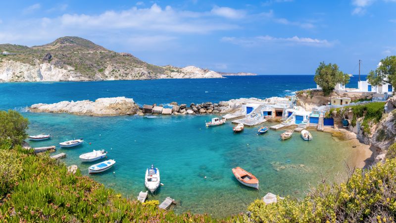 Milos est une île qui appartient à l’archipel des Cyclades. Les petits villages de pêcheurs ont un charme fou, en particulier Klima, qui prend une teinte toute particulière au coucher du soleil. Un spectacle à ne pas manquer ! Les côtes de l’île sont réputées comme faisant partie des plus spectaculaires. Du large, on peut apercevoir des falaises polies par la mer, et percées d’une multitude de petites grottes. La grotte marine de Sykia, est une petite merveille, idéale pour le snorkeling et la baignade. De même, les formations rocheuses de Kleftiko, ancien repère de pirates, offrent des panoramas d’exception !