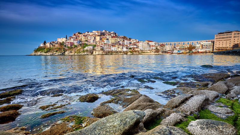 Ville du nord-est de la Grèce et à l’est de Thessalonique, Kavala est une ville côtière assez méconnue, mais qui ne manque pas de charme. Du haut de la forteresse qui domine la ville, la vue sur la mer d’un bleu profond et sur les montagnes environnantes est spectaculaire. Comme tout le littoral grec, de magnifiques plages aux eaux translucides n’attendent que d’être découvertes. L’une d’entre elles, Ammoglossa Keramotis, a la particularité d’être une longue langue de sable qui s’enfonce dans les flots. Bordée de pins et avec son ambiance tropicale, c’est l’endroit idéal pour se détendre après une journée de visites.