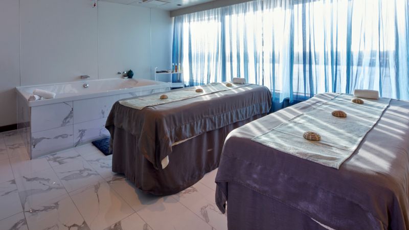 Queen Victoria et Queen Elizabeth vous proposent la plus belle offre de spa et soins bien-être en mer. Profitez des douceurs de Mareel Wellness & Beauty, l’institut exclusif de bien-être à bord de votre navire, qui s'inspire, de manière inédite, des océans sur lesquels vous naviguez. Pour satisfaire vos sens, Mareel Wellness & Beauty éveille esprit, corps et âme. Inspirée par l'océan, une large gamme de massages, de soins du corps et du visage apportant bien-être et relaxation est proposée. Dans ce centre de thalassothérapie à l'environnement unique, vous trouverez notamment une suite thermale, une piscine d'hydrothérapie et un espace de relaxation. Détendez-vous et profitez d'une totale remise en forme grâce aux installations à bord de votre navire.