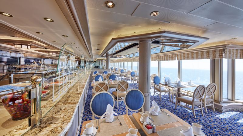 Pour le dîner au Queens et Princess Grill, Britannia Club et pour le 1er service du Britannia, votre table sera réservée pour la durée de votre croisière alors que pour le petit-déjeuner et le déjeuner, le placement est libre dans ces mêmes restaurant. Chacune des salles à manger propose des menus délicieusement imaginatifs, un large choix de vins exceptionnels et un service impeccable.