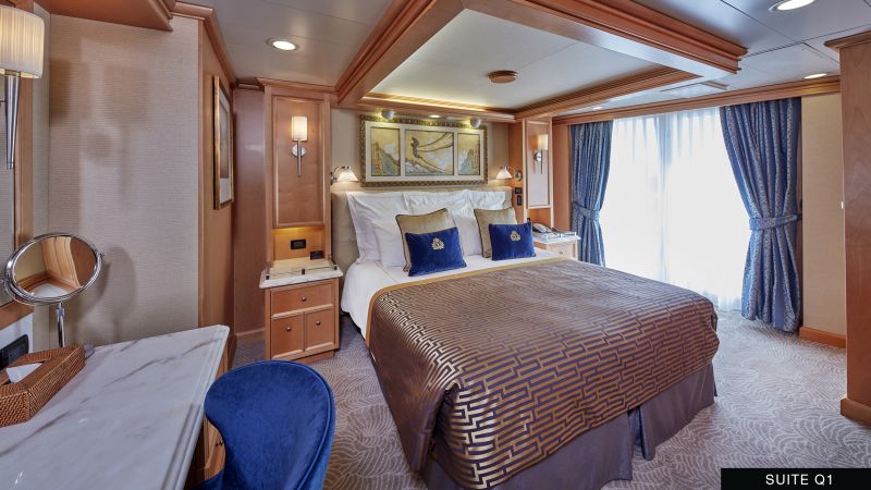 Offrez-vous un séjour exceptionnel dans l’une des suites Queens Grill, parmi les plus belles suites en mer. Avec des superficies allant de 47 à 198 m², ces suites allient luxe et confort, avec des matériaux nobles et une décoration raffinée. Profitez d'un espace salon spacieux, de votre propre terrasse privée et des services d’un majordome personnel. Tout au long de votre croisière, un service impeccable vous sera offert, avec des attentions comme des déjeuners en terrasse, des coupes de champagne, et des excursions organisées pour vos escales. Un véritable paradis pour ceux qui recherchent l’excellence et le raffinement en mer.