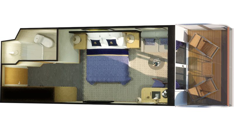 Offrez-vous une évasion totale dans une cabine Britannia Club Balcon de 24 m². Confortable et élégante, votre cabine vous séduira grâce à ses espaces généreux, son lit king-size, son coin salon et son bureau. En plus de votre balcon privé, vous bénéficierez de privilèges exclusifs, tels que l’accès au restaurant Britannia Club, où votre table est réservée pour le dîner. À votre arrivée, une bouteille de vin vous attendra dans votre cabine, et vous pourrez profiter d’un service en chambre disponible 24h/24. Une expérience de luxe, pensée pour rendre chaque instant de votre voyage inoubliable.