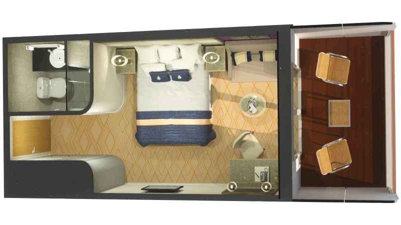 Quelle que soit votre sélection, chacune de ces spacieuses cabines de 23 à 25 m² dispose d’un balcon meublé avec deux chaises et une table, créant un véritable sanctuaire privé où vous pourrez savourer la brise marine et la beauté infinie de l’horizon.