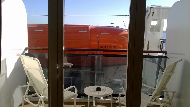 les cabines DF, DC et DB ont la vue obstruée par les canots de sauvetage.