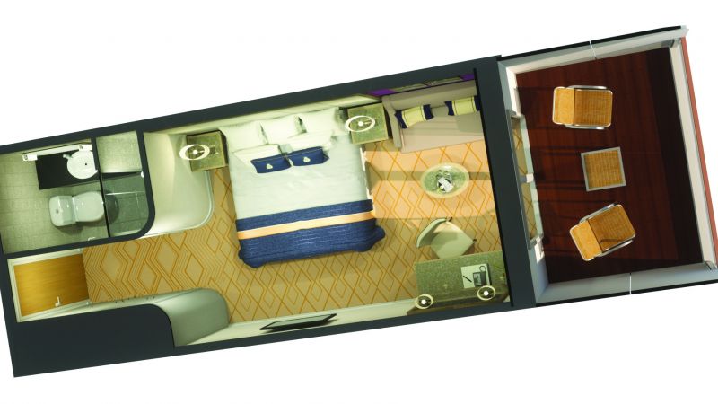 Les cabines Britannia Club Balcon offrent le même confort que les cabines balcon, mais avec un plus : la possibilité de dîner à tout moment au restaurant Britannia Club, sans contrainte d'horaires. À votre arrivée, une bouteille de vin vous attend dans votre cabine. Profitez de cet instant de détente alors que le navire prend le large. Alliant confort et élégance, cette cabine vous promet un séjour en mer d’exception, à l’image de l’expérience Britannia Club.